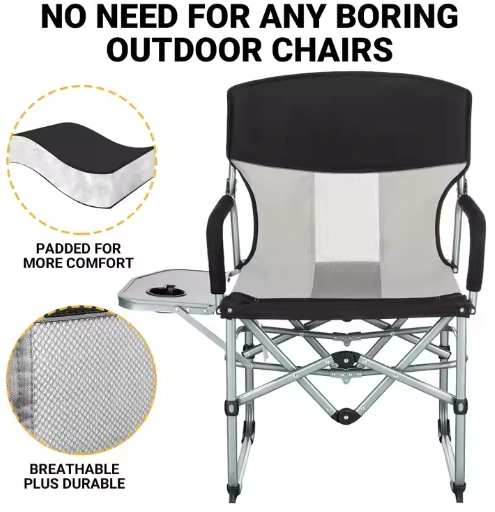 BBQ telkimispiknikool, kokkupandav telkimistool, raskeveokite kaasaskantavad direktorid toolid täiskasvanutele koos külglauaga võrgusilmaga kompaktstiiliga õues
