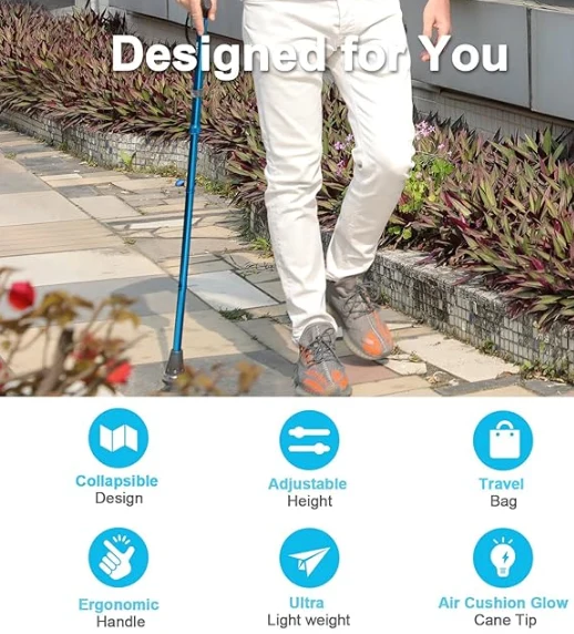 Kokkupandav teleskoopiline kõndimisroog, ots süttib öösel, mis tagab suuresti öösel kõndimise ohutuse. (Kuna kokkupuude ainult teatud ajaks on valguses, tuleb Glow koonus pimeduses nähtavuseni.