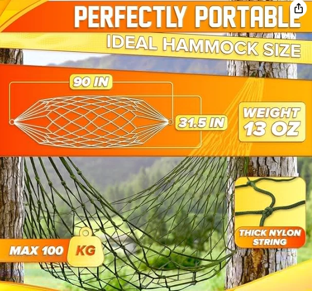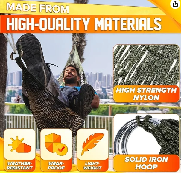 Matkades rippuv võrkkiige, neil nailonist nööriga võrkkiiges on kõrge koormuse kandevõime. Need nailonköiega võrkkiiged sobivad suurepäraselt sise- ja välistingimustes suure vastupidavuse ja kulumise vastupidavuse tõttu