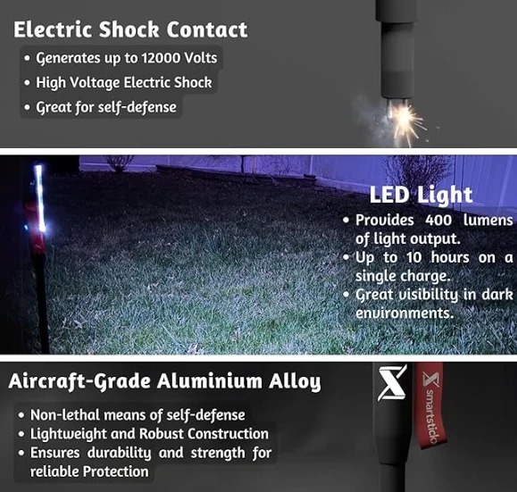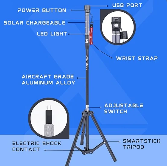LED -LETT TREKKING POLE, LED -LET, mis pakub muljetavaldavat 400 luumenit valgust väljundit, mis on tugevam kui teie keskmine pihuarvuti taskulamp, mis võib kesta kuni 10 tundi ühe laadimisega. Kvaliteetsed matkapostid matkamiseks, telkimiseks või muudeks öiseks tegevuseks ja vilkuv tuli igasuguseks hädaolukorras