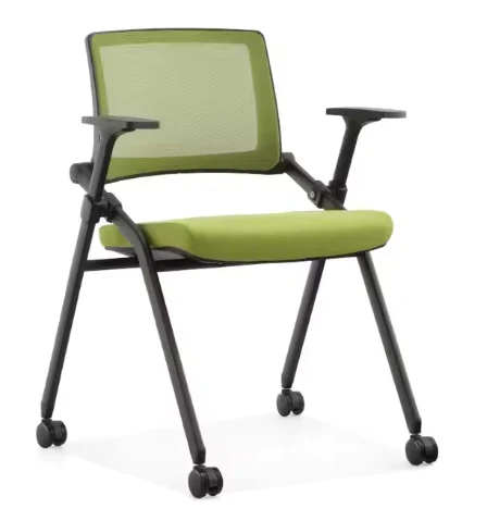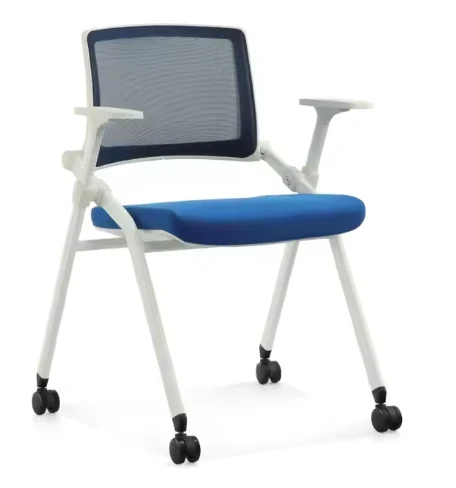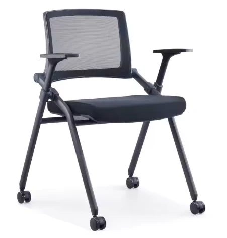 Polsterdatud metallist kokkupandav tool, kokkupandav kontoritool PU-ratastega ja libiseva käetugede-ergonoomilise võrgusilmaga tagasi, virnastatav konverentsiruumi tool, kontorikülaline ja vastuvõtu- ja koosolekutool