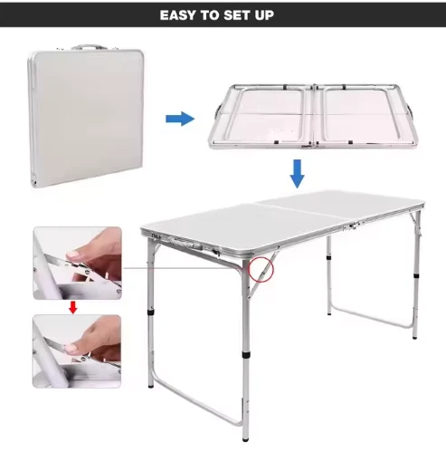 Kaasaskantav kokkupandav alumiiniumlauas on multifunktsionaalsed kasutusalad, nii sise- kui ka välistingimustes, sealhulgas piknikulaud, rannalaud ja telkimismasinad, mida kasutatakse telkimiseks, rannas, turismi, spordiürituste, RV -ga ja kalapüügiks.