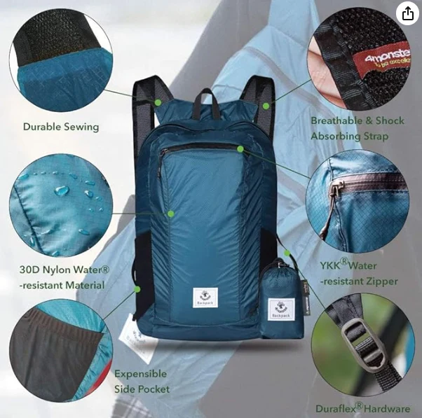 Veekindel kerge matka seljakott, see kerge matkapäevakott on valmistatud veekindlast materjalist ja tõmblukust. Takistab vihmavee niisutamist telefoni või sularaha ja muude seljakotis olevate esemete niisutamist.